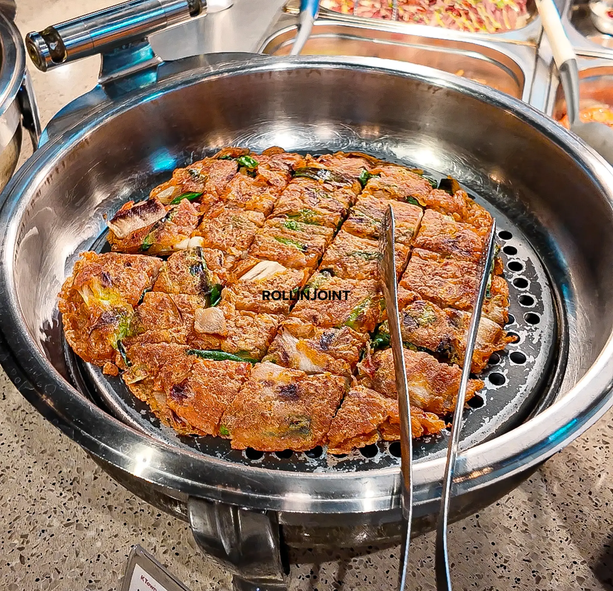Nothing arrives ready-made. The pancakes, japchae, sides and sauces are prepared daily so that the buffet reflects the kind of setup you would find in a family-run shop in Korea.
