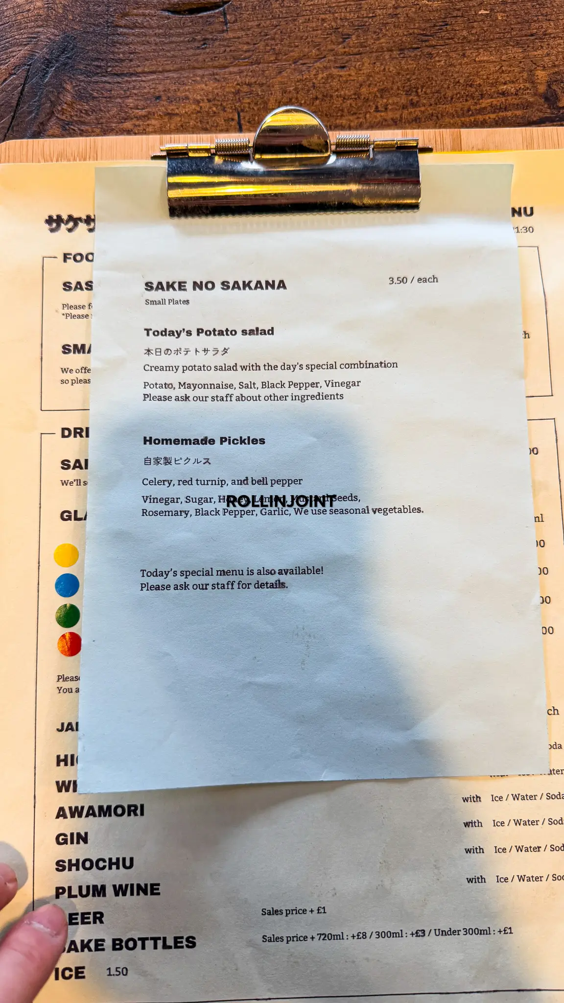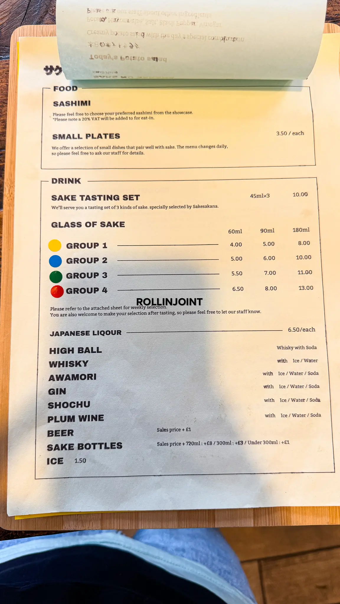 And you can have a tasting. There is a menu that has a type of sake and some side dishes that goes well with the drink.